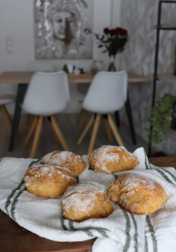 Monissa sämpyläohjeissa on paljon erilaisia jauhoja ja siemeniä, mutta reseptejä selatessa ja aamuisesta leivän tuoksusta haaveillessa jouduin toteamaan, että omasta jauhokaapista ei löydy kuin vehnäjauhoja ja puurohiutaleita – mikä on kyllä vähän harvinaista. Melkein hylkäsin leivonnan, mutta sitten päätin soveltaa sitä mitä kaapista löytyi käyttäen pohjaideana Siken rapeakuoristen aamiaissämpylöiden ohjetta (ei vaivata, löysä taikina). Yllätyin miten helposti herkulliset aamupalasämpylät syntyivät näistä edullisista perusaineista 🙂. Näitä onkin tullut tehtyä aika monta kertaa…