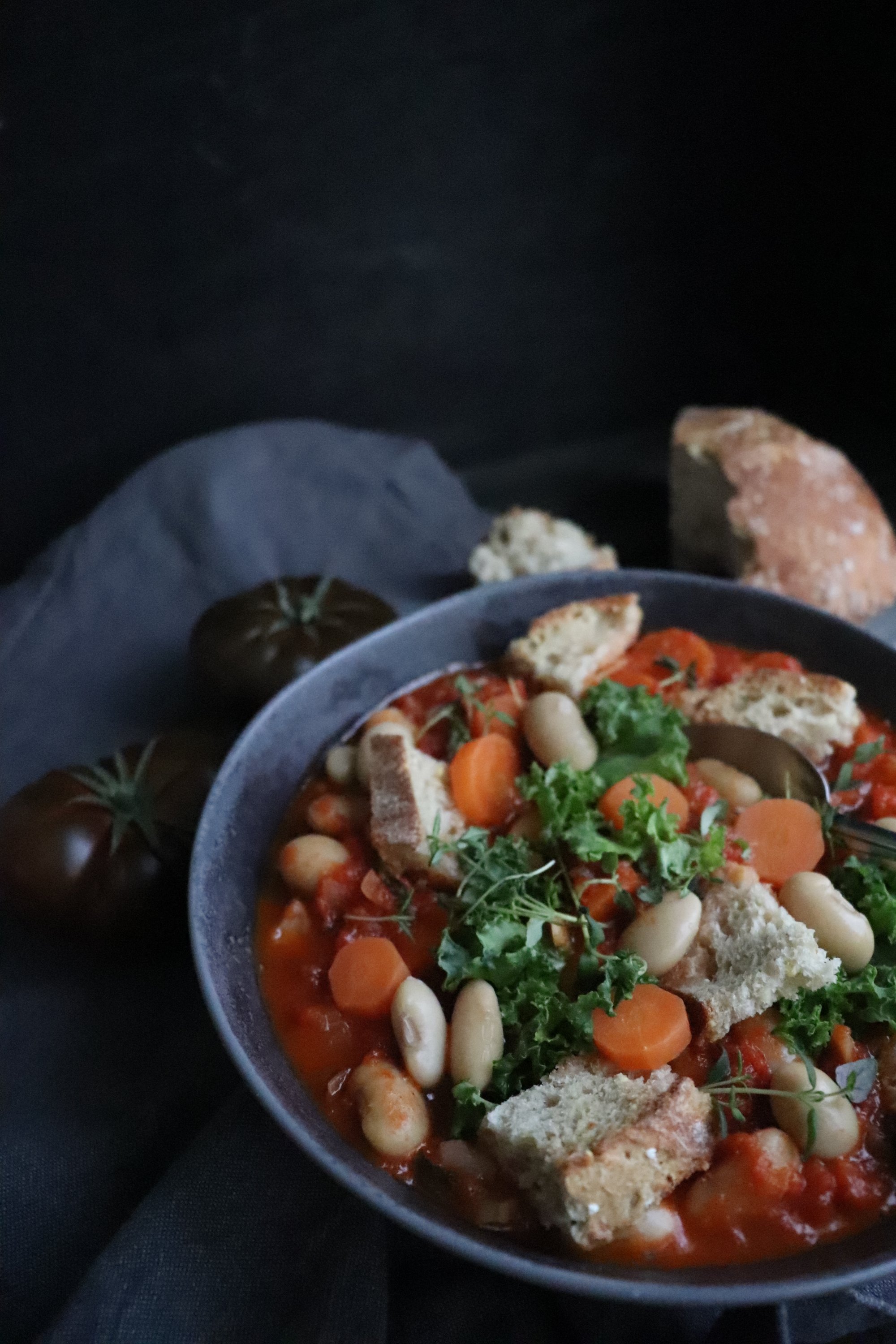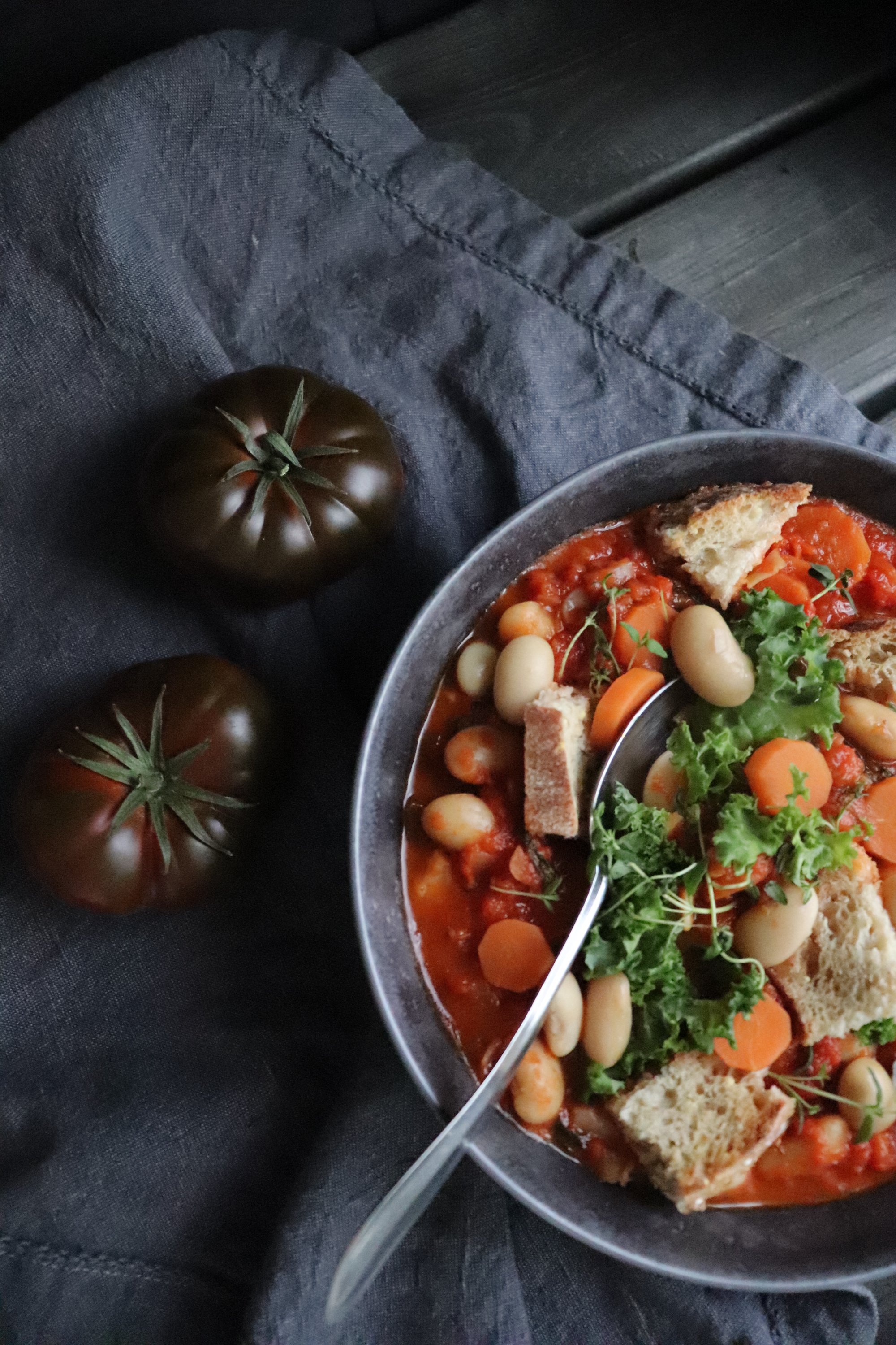 4) Lisää kerma ja huuhdellut valutetut pavut, anna kiehahtaa.