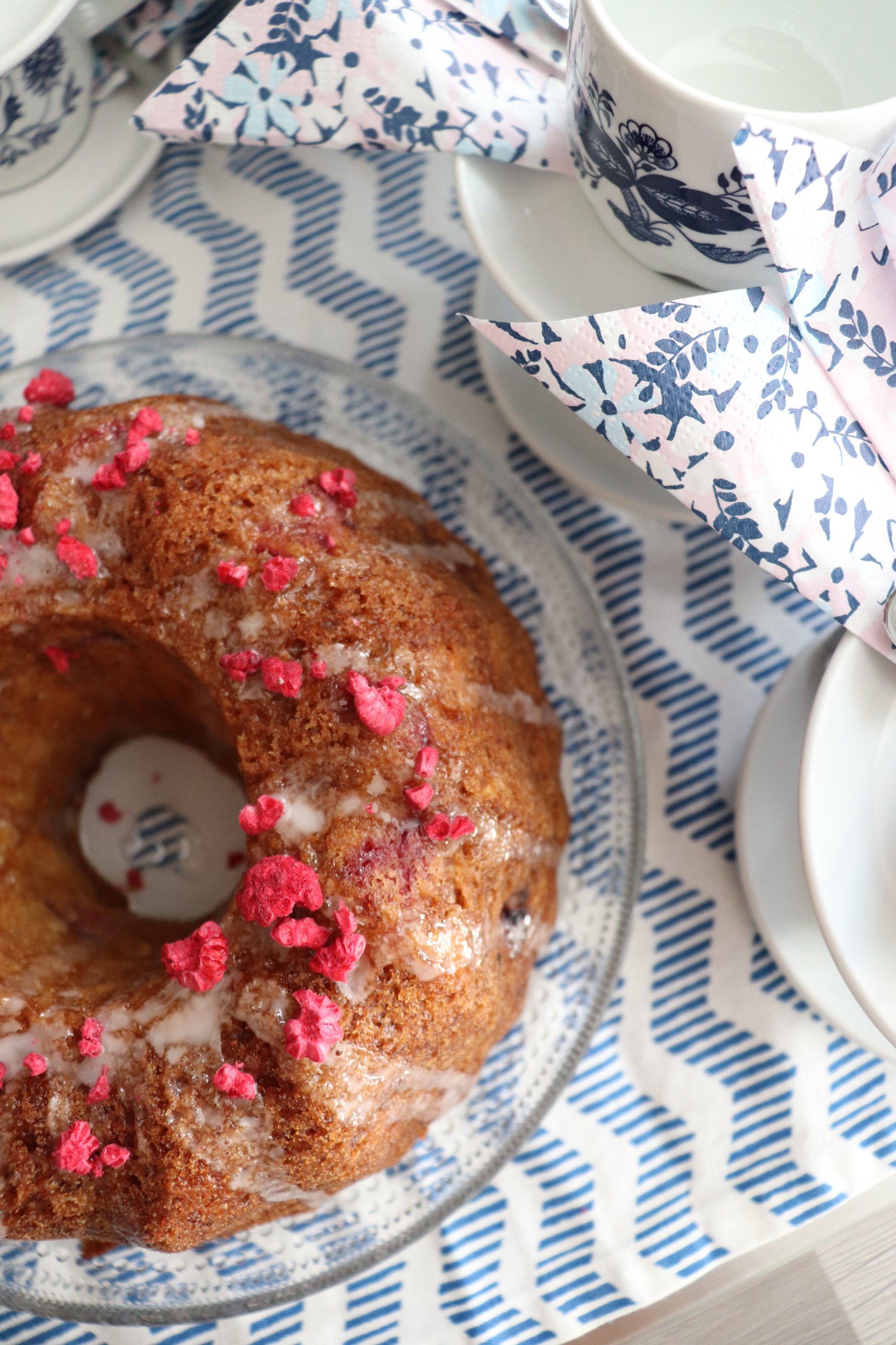 Mansikkainen raparperikakku