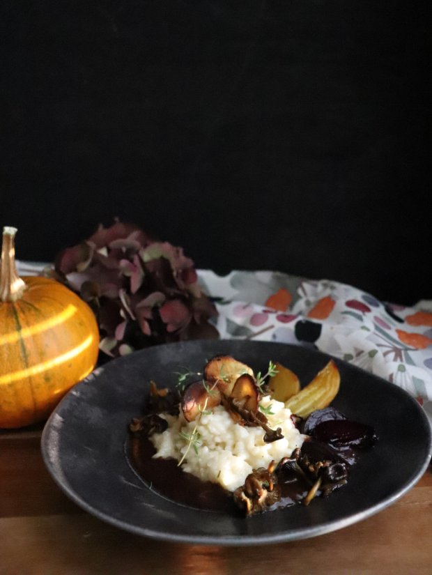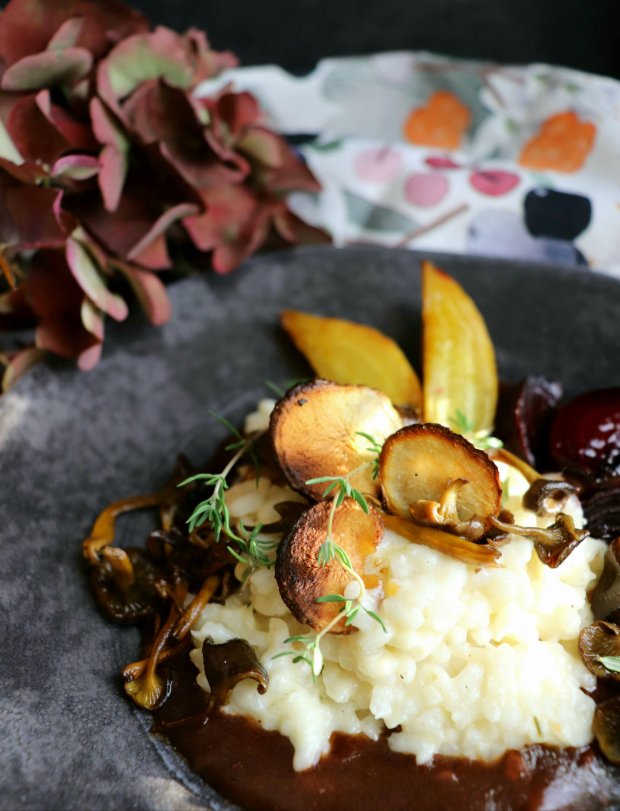 Maa-artisokan maussa tiivistyy syksy. Yleensä teen siitä keittoa, mutta nyt teki mieli kokeilla jotain uutta. Ajattelin ensin keittää sen kuutioina risottoon, mutta sitten tuli mieleen tämä kermaisempi tapa. 7 ruokailijan (myös lapsia joukossa) mielipide oli, että toimii loistavasti 😊.